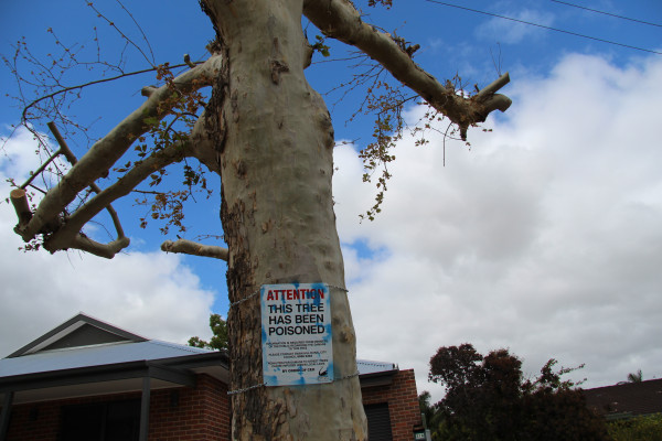 In a bid to find the culprit of the poisoning, resident Cynthia Watson placed a sign on the trees urging anyone with information to come forward.
