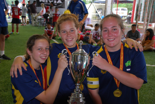 THREE Swan Hill girls were among the celebrations when an Australian team won the Under 18 girls’ division of the 2014 Singa Cup last week.