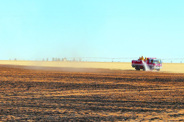 Farmer Raymond Hepburn said he was slashing some heavy stubble when the slasher sparked and caused the fire in the paddock next to his house.