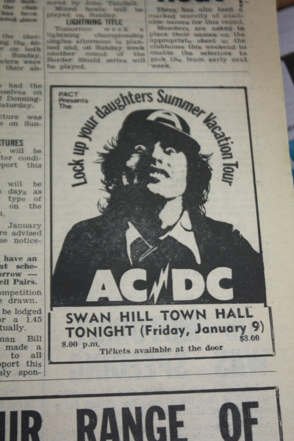 SATURDAY marked the 40th anniversary of when AC/DC came to Swan Hill for its ‘Lock up your daughters Summer Vacation Tour’.