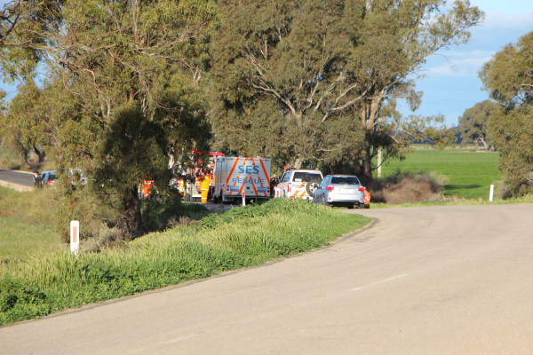 Swan Hill highway patrol Senior Constable Neal Leach said the Holden Commodore was travelling east when it crossed to the wrong side of the road and travelled down a grass slope before ploughing into a tree.