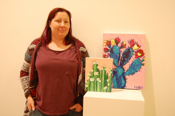 The works on display in her exhibition have a very Australiana feel and feature an array of native and introduced plants, including wild flowers and cacti.