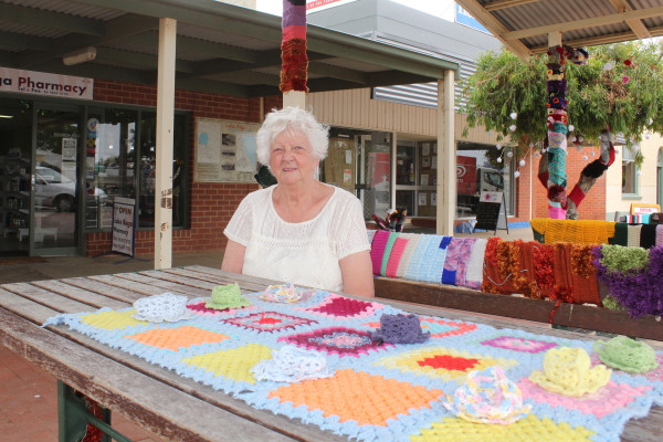 Yarn bombers have struck once again, this time decorating the picnic area in front of the Lake Boga general store on Marraboor street.