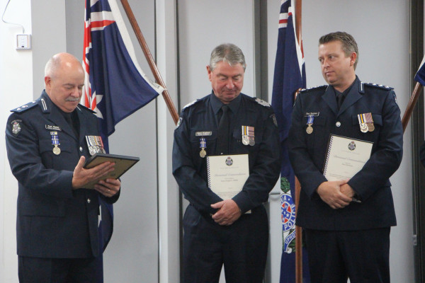 Five officers received the Victoria Police Service Medal, awarded by the Chief Commissioner in recognition of sustained, diligent and ethical service, while four officers were awarded the National Medal for diligent long service in organisations that protect life and property at some risk to their members.