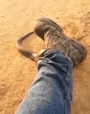MOULAMEIN farmer China Gibson has grabbed the world’s attention after uploading a video showing a snake in his trouser leg that has received more than five million views in less than a day.
