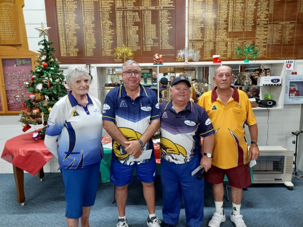 Results of Presidents Evening held on December 18 were: Winners – G. McIntosh, S. Meehan and J. Ford, a combination team from Racecourse and Lake Boga.