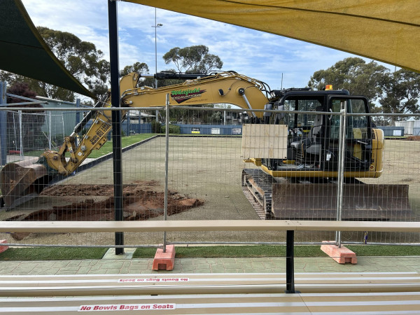 The Racecourse Bowls Club has started digging up its B Green to put our new TigerTurf synthetic green down.
