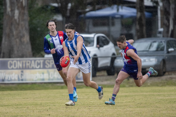 Like most games around the district, the persistent rain made ball movement difficult for much of the afternoon, with Cohuna’s Chris Anderson getting on top in the ruck and onballers Jarrod Findlay, Joel Helman and Williams all finding plenty of the ball in the wet weather.