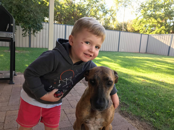 A mixture of Doberman, Bullmastiff, American Staghound and Australian Silky Terrier, the family adopted Rippa six years ago.