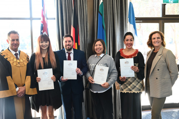 In a ceremony just metres from the banks of the Murray River, Ching-Hui Hung, Wai Ki Smith, Faleua Romeo and Andrew Wright became Australians.