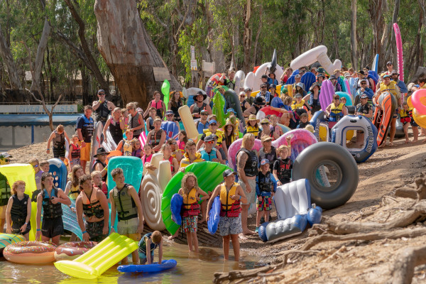 After three years of the COVID-19 pandemic, border restrictions and the 2022 floods, people were to pump up their inflatable for the Australia Day lilo race on the Murray River.